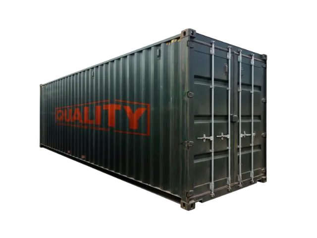 Contenedor marítimo seco de 40 pies estándar, ideal para posicionar en espacios amplios con la finalidad de almacenamiento por su fuerte resistencia y seguridad para toda clase de carga (no perecible).